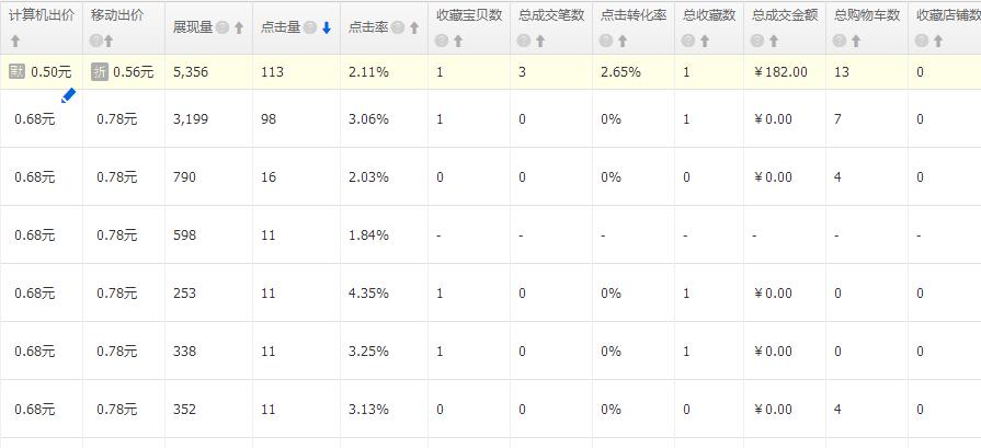 确定好关键词就是出价调整了,可以用每个关键词的出价都调整到市场平均出价是的30%--50%,来让我们的关键词可以得到足够的曝光量。