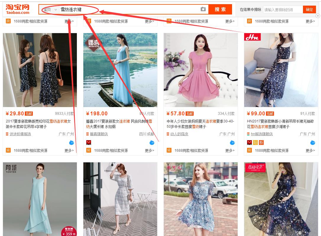 而如果我们的产品更倾向于大码连衣裙, 因为我们的产品模特是比较胖的, 那很明显我们针对人群就是喜欢穿大码的, 所以我们如果用大码连衣裙作为精准的核心词来组合标题, 那我们的产品就有更多的机会展现在搜索大码连衣裙的人群面前, 而在这个人群面前你在搜索雪纺连衣裙的人群面前点击率更加的大, 你就是这个人群,更加适合我们的产品, 而我们的产品也就更加容易获得流量, 就更加容易获得订单, 我们产品在这样的人群面前就更加容易的得到数据和权重的提升。