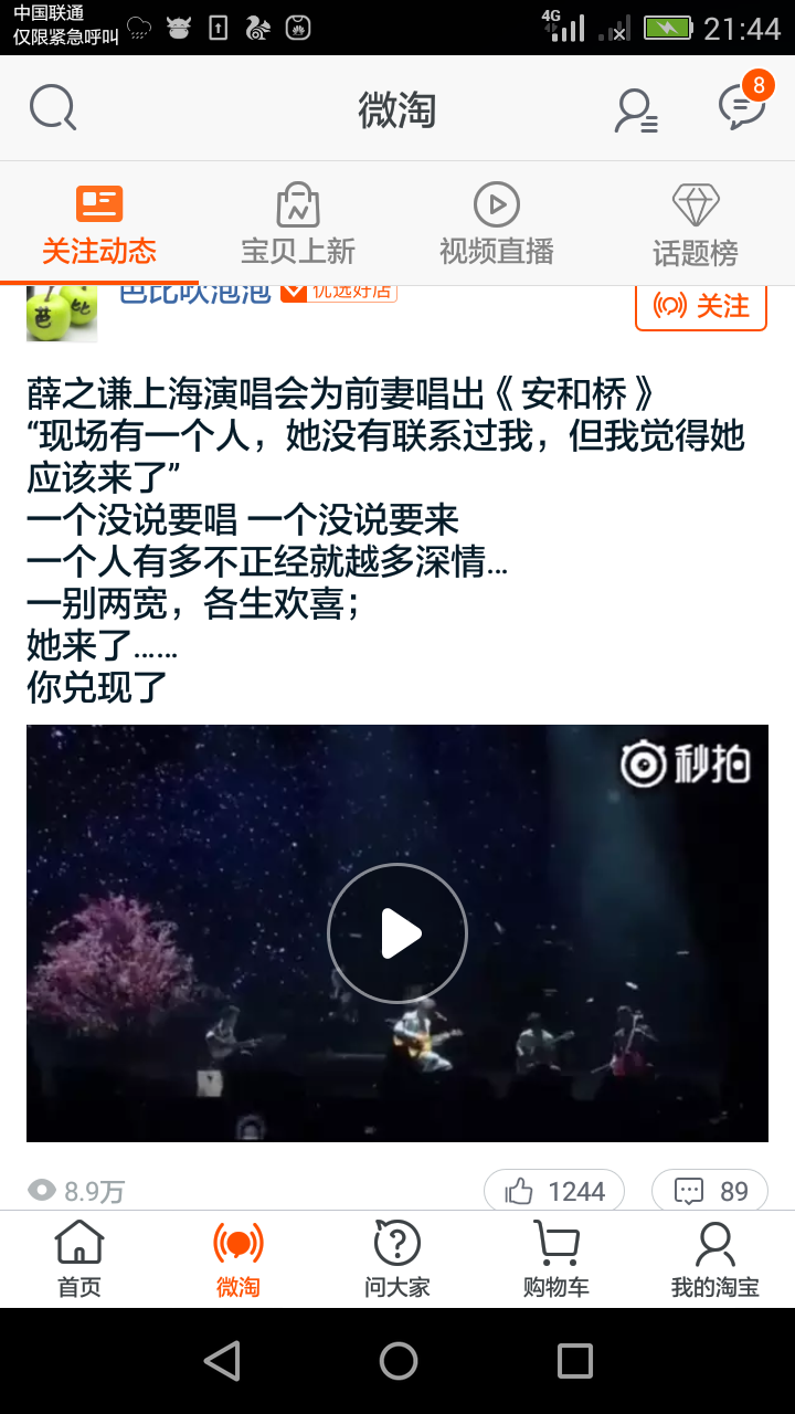 【举个栗子】最近薛之谦的演唱会为他前妻演唱歌曲这个新闻很火爆,这个店铺马上就发布了这个动态,结果有8.9万的人观看,一千多的点赞和评论。要知道微淘是百万计的流量入口,只要你发布的动态沾上一点话题性,流量分分钟破万了,所以大家一定要记好我们的内容和标题要吸引你客户的眼球,你就成功一半了