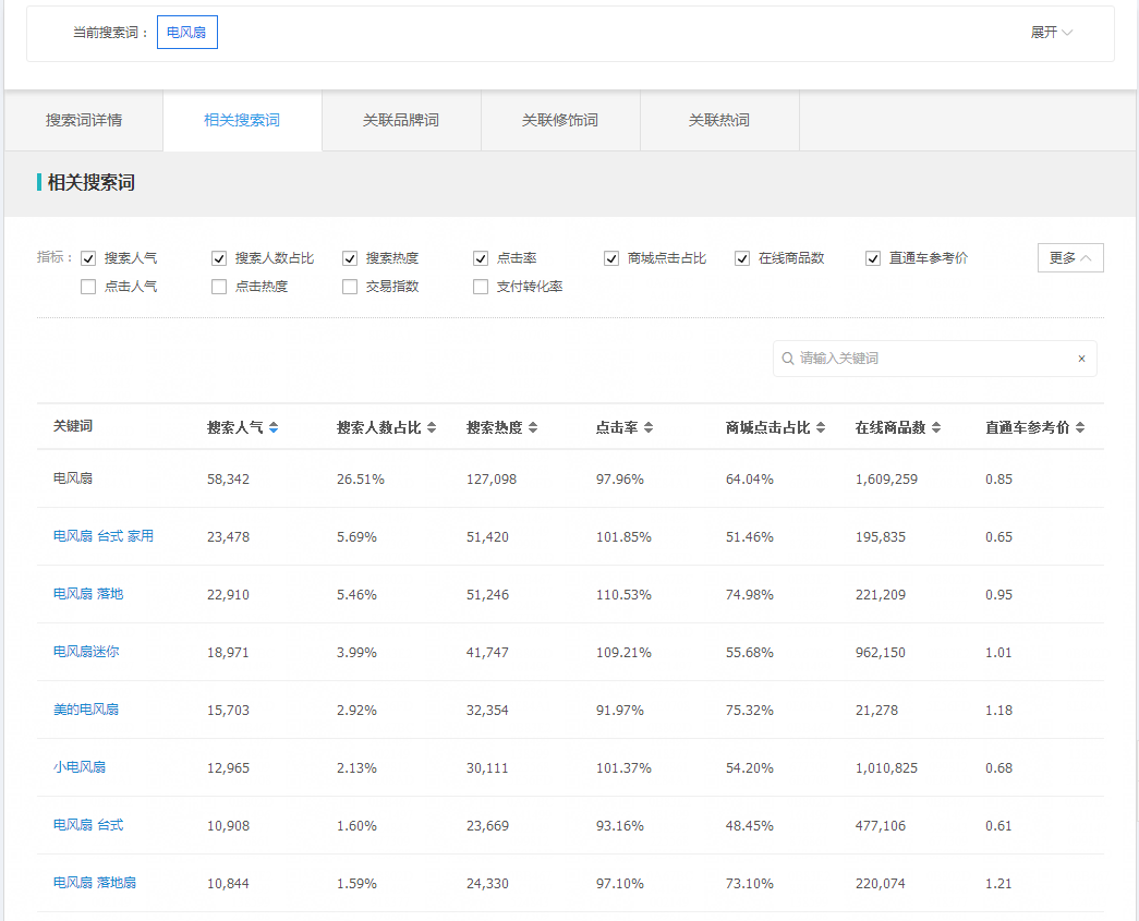 首先,想要开车的话,我们得有关键词啊,那么找关键词就需要我们去分析每个词的效果,有生意参谋的小伙伴可以把词放到市场行情里面去分析,通过这个关键词的搜索人气和在线商品数分析这个词的竞争度,还有点击单价,可以分析我投入的预算,在养分的时候我建议大家选择一些长尾词,这类的词比较好控制,选择少量词即可。每个词的相关性都去做满,可以把词加到创意标题中看效果。